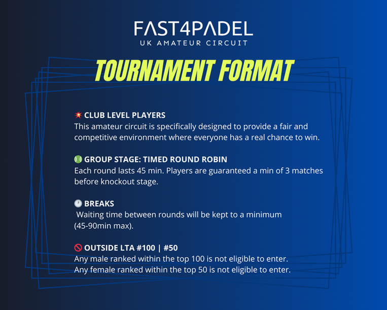 Sat, Apr 26Slazenger Padel Club LeedsWin the FAST4PADEL UK AMATEUR CIRCUIT to secure an all-expenses-paid tournament experience in Spain (excluding flights) and face off against winners from other countries!